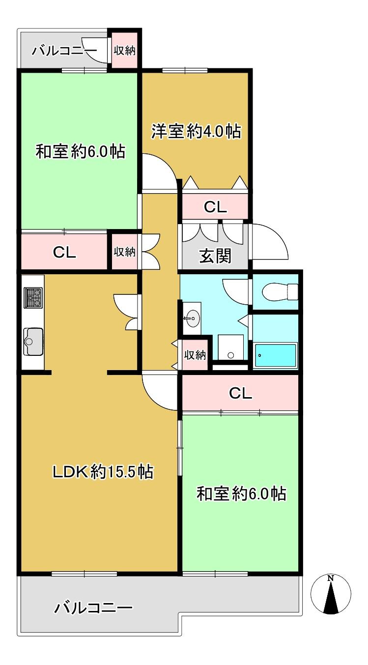 ★2面バルコニー 陽当り通風良好 全居室収納あり